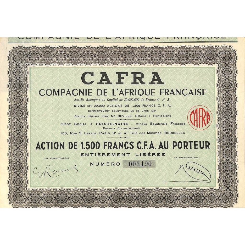 Una azione al portatore del valore di 1500 Franchi.