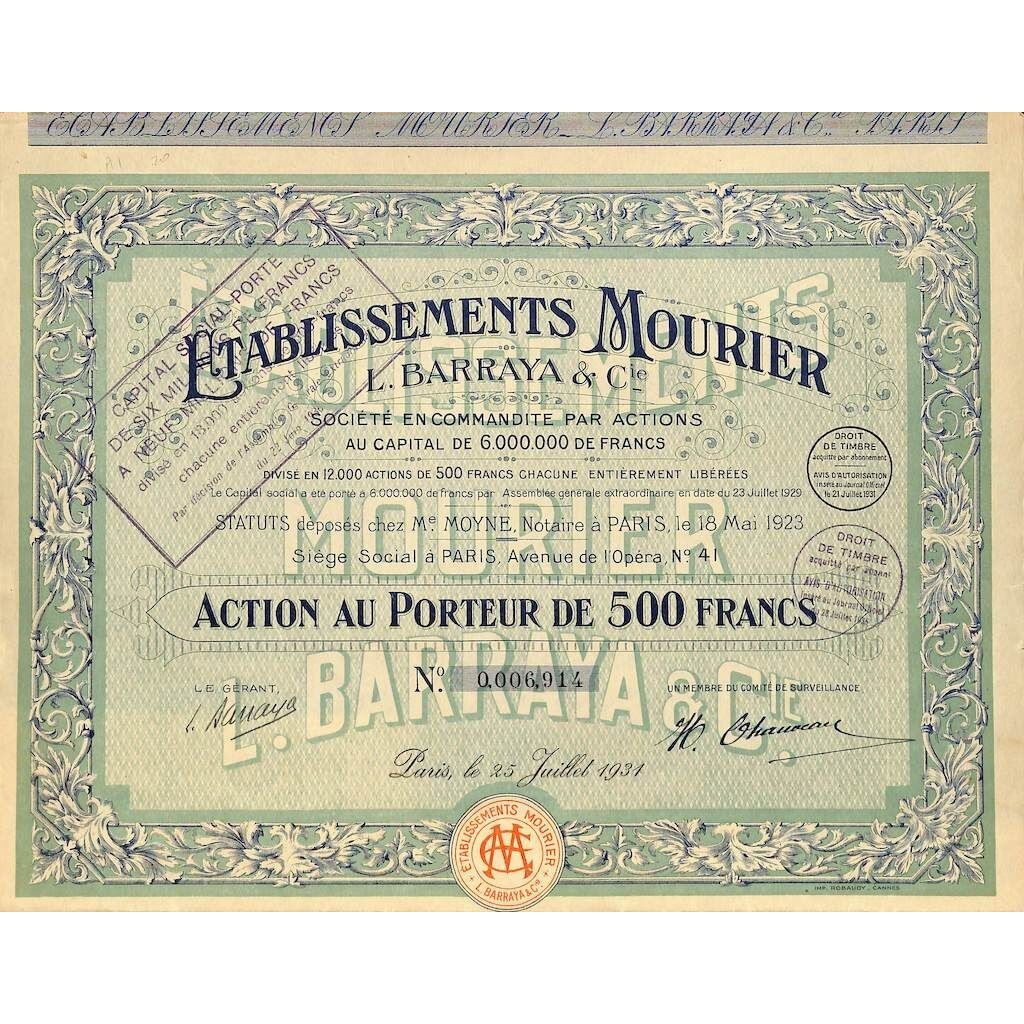 1931 - ETABLISSEMENTS MOURIER - L. BARRAYA E C. (CAP. SOC. 9.000.000 DI FR.)