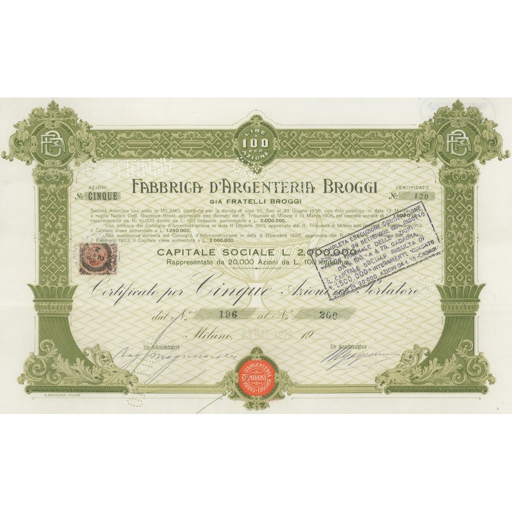 CERTIFICATO PER 5 AZIONI