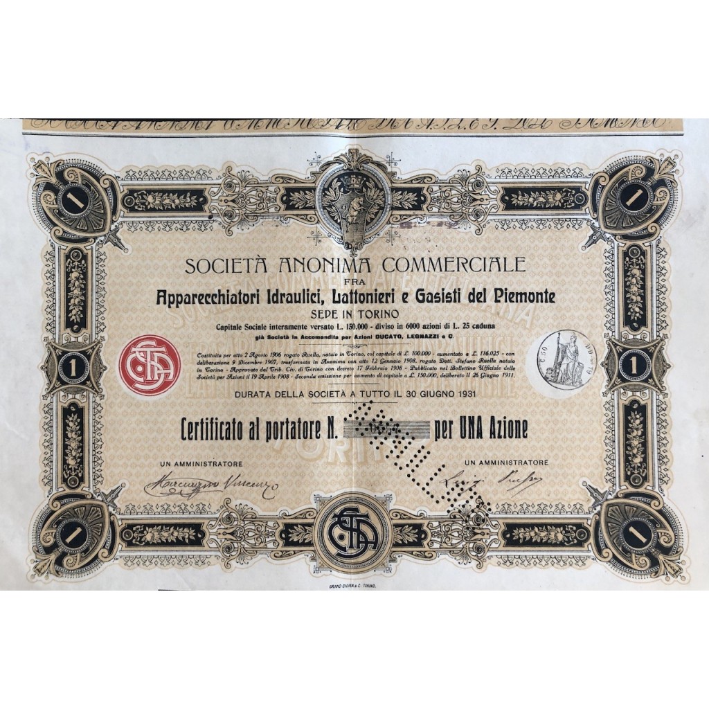 CERTIFICATO AL PORTATORE PER 1 AZIONE