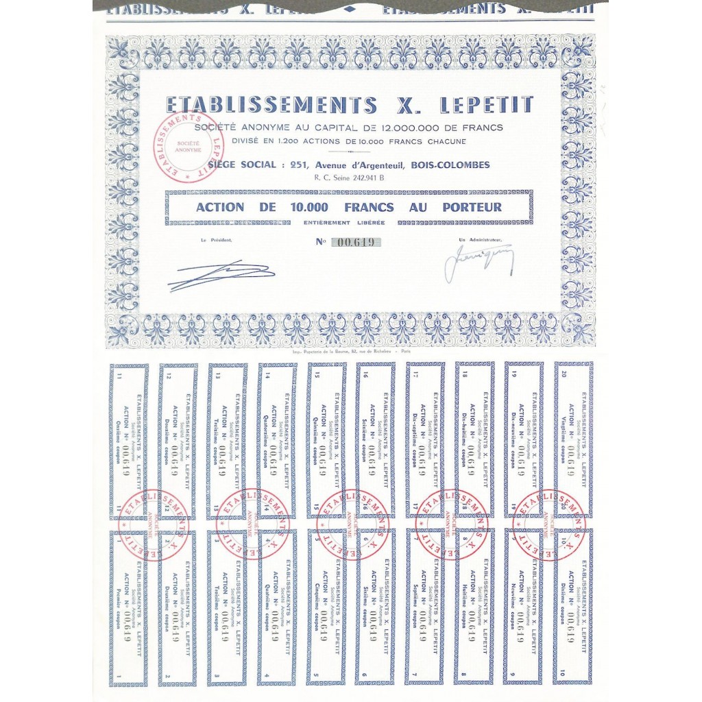 Una azione al portatore del valore di 10000 Franchi.