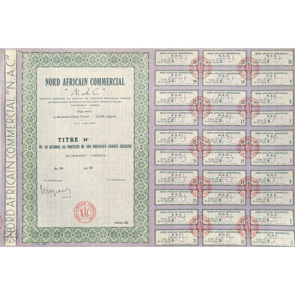 Titolo di 50 azioni al portatore del valore di 100 Franchi ciascuna.