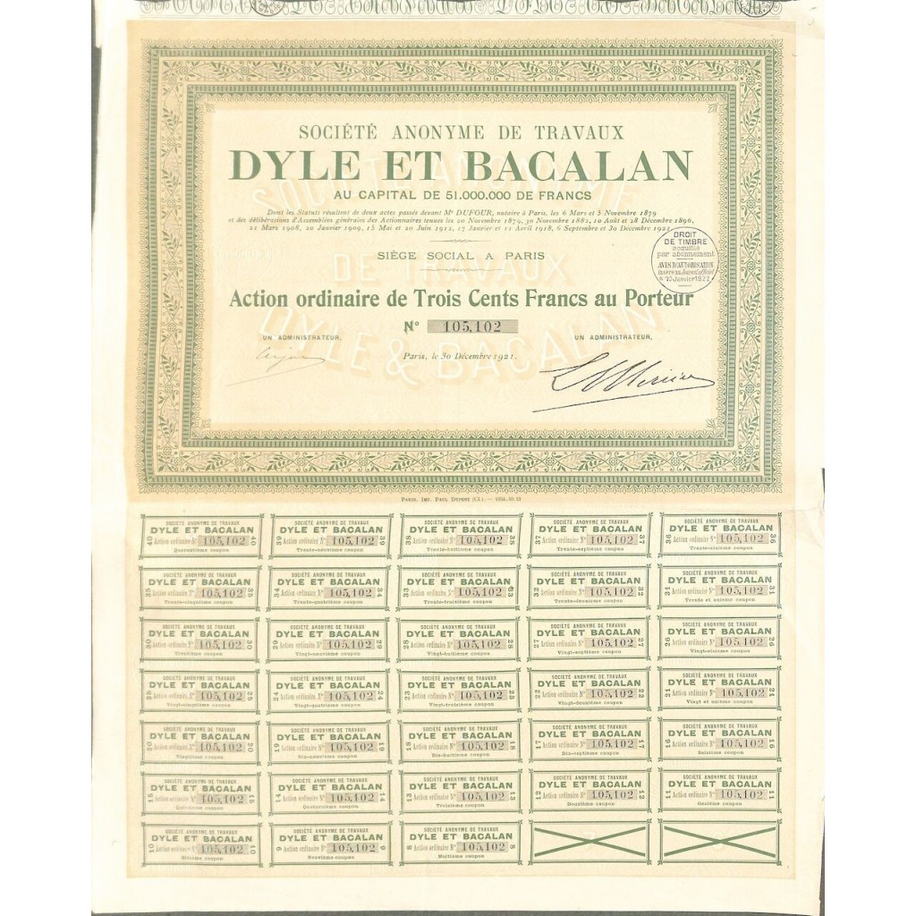 Una azione ordinaria al portatore del valore di 300 Franchi.