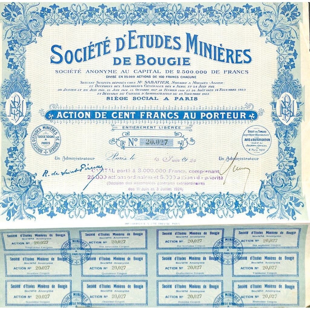 1924 - ETUDES MINIERES DE BOUGIE SOC. D'