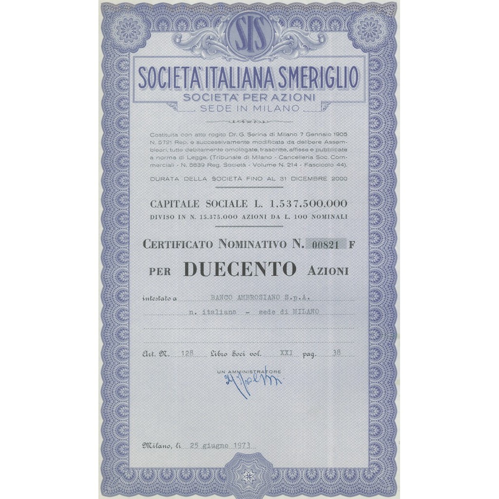 CERTIFICATO NOMINATIVO PER 200 AZIONI