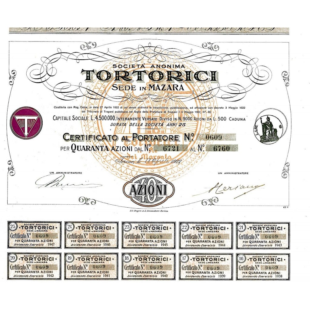1922 - TORTORICI SOC. ANON. SEDE IN MAZARA - TORINO