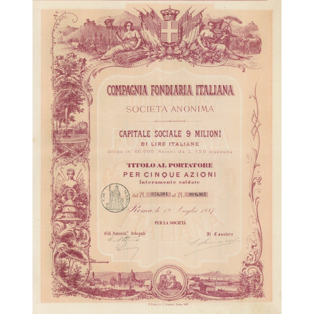 COMPAGNIA FONDIARIA ITALIANA SOC. ANON. - 5 AZIONI ROMA 1887