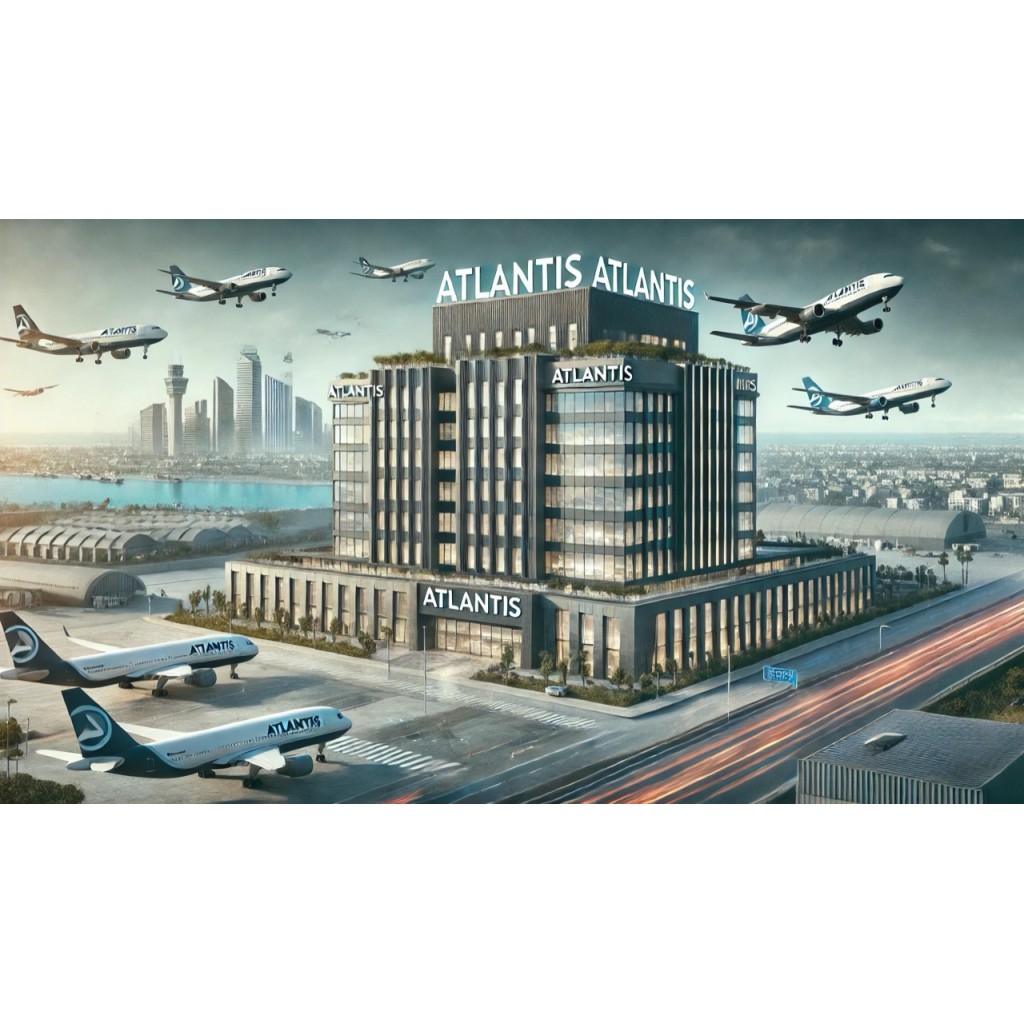 - Illustrazione dell'Aereo: Sul lato destro del documento è presente l'illustrazione di un aereo della compagnia Atlantis, rappresentando l'identità e il settore di attività della società.