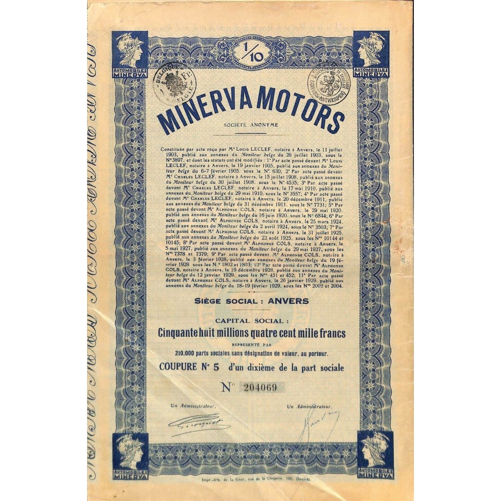 La Minerva era un'eminente automobile di lusso belga fabbricata dal 1902 al 1938. La società divenne defunta nel 1956. Minerva iniziò a fabbricare biciclette di sicurezza standard nel 1897, prima che nel 1900 si espandessero in auto leggere e "motociclette", in particolare biciclette motorizzate che erano un precursore delle motociclette .