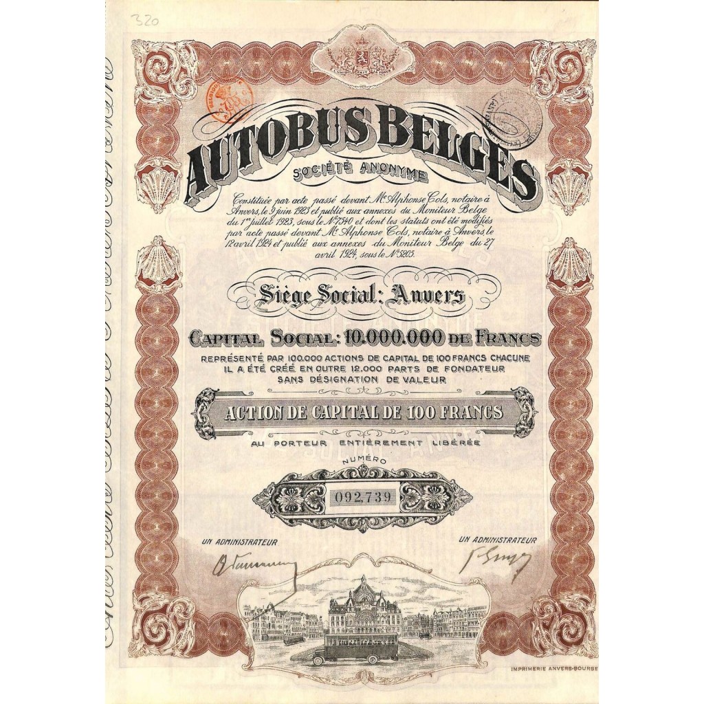 Una azione al portatore del valore di 100 Franchi.