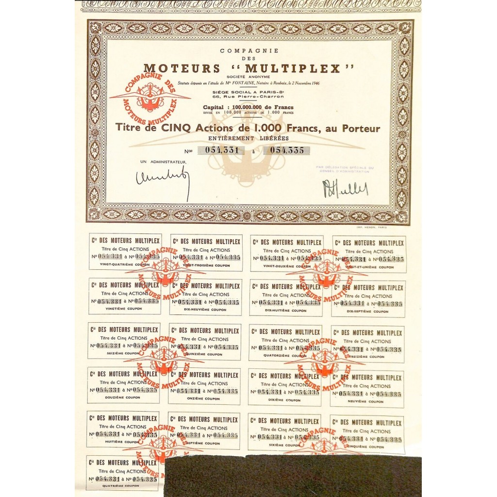 Titolo di cinque azioni al portatore del valore di 1000 Franchi.