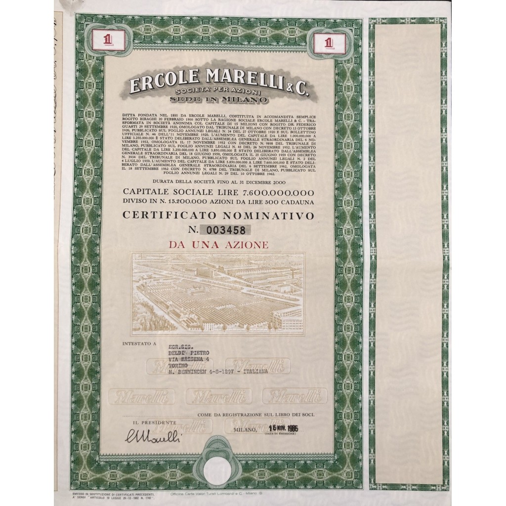 Nel 1920 La Ercole Marelli diventa Società anonima per azioni. Nel 1922 l'impresa viene ereditata da Fermo Marelli, figlio di Ercole Marelli.