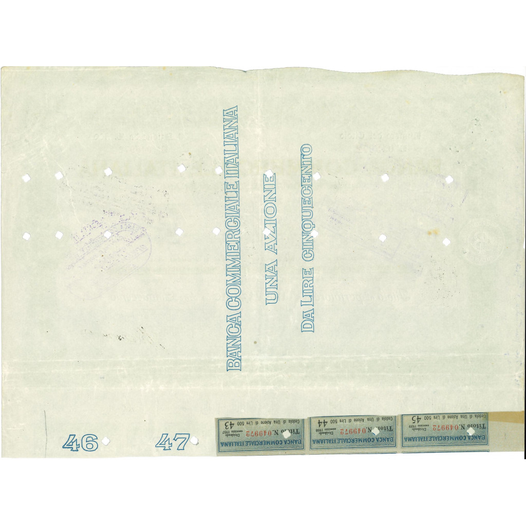 1912 - BANCA COMMERCIALE ITALIANA 1 AZIONE LIRE 500 - MILANO