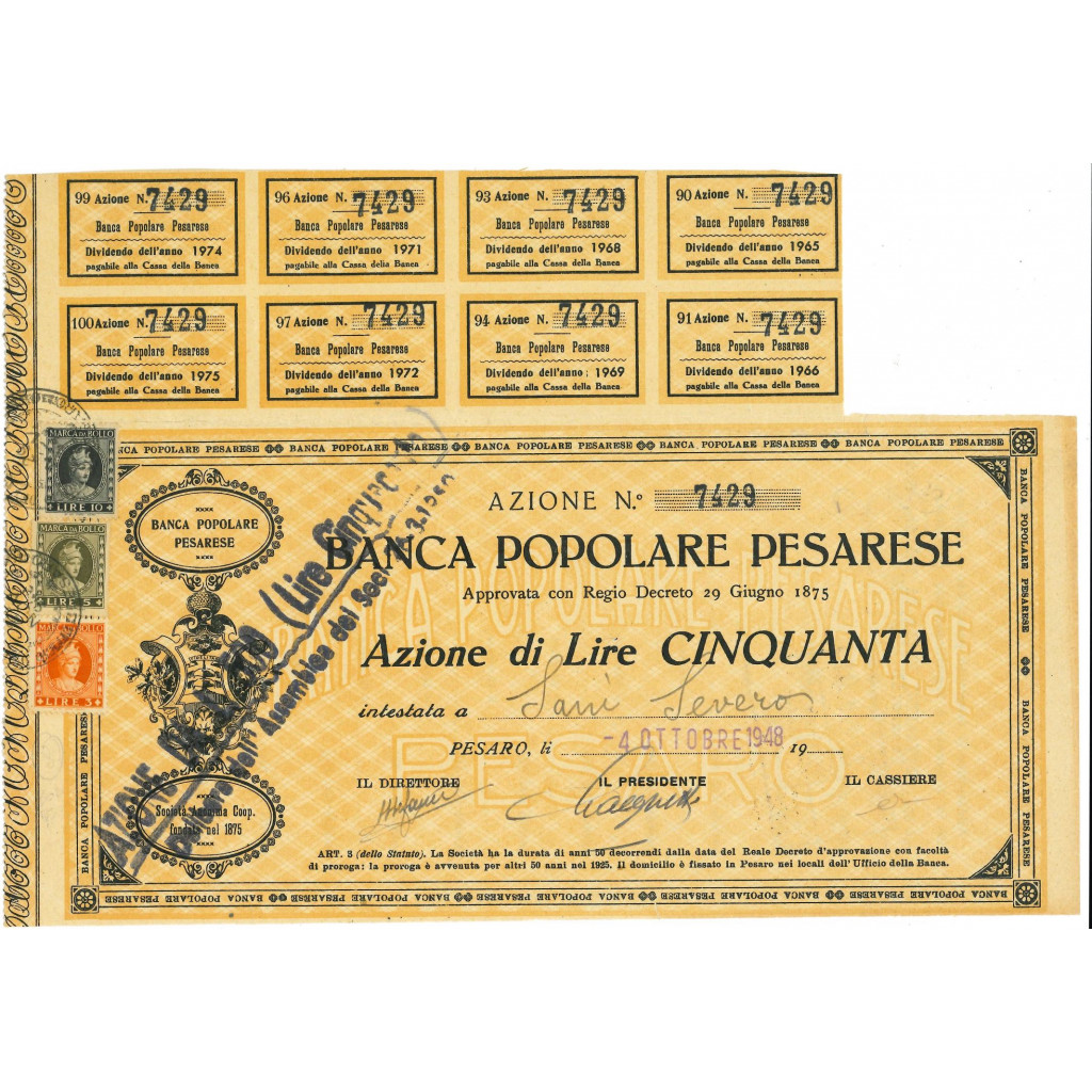 Il Banco Popolare Pesarese fu fondato con l'obiettivo di sostenere l'economia della provincia di Pesaro e di fornire servizi finanziari alle imprese, agli agricoltori e ai cittadini locali. Come banca popolare, aveva una struttura di governance che coinvolgeva i soci nella gestione e nelle decisioni aziendali.