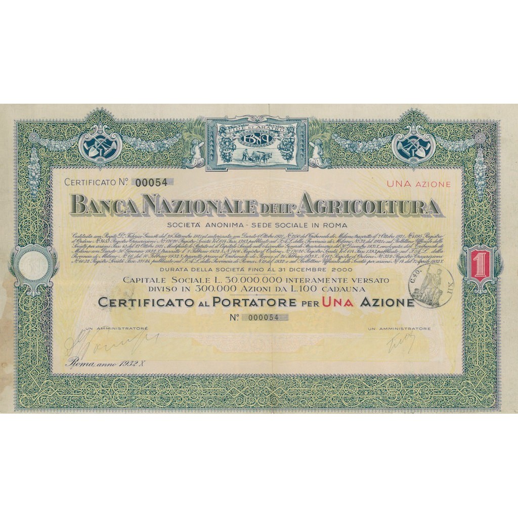 BANCA NAZIONALE DELL'AGRICOLTURA - UNA AZIONE ROMA 1932