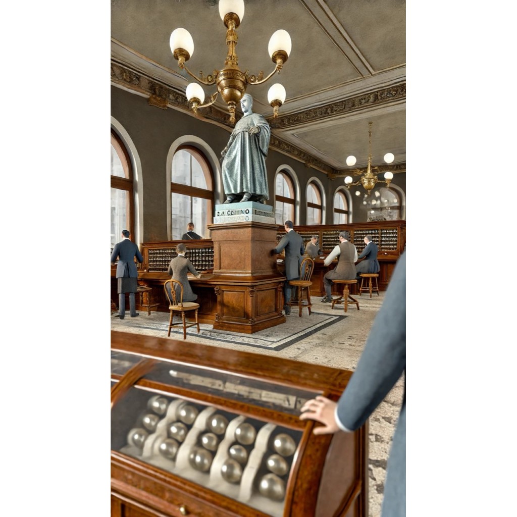 L’elemento iconografico più prominente è la figura di San Geminiano, simbolo della città di Modena, posizionato al centro del certificato. Questo tipo di rappresentazione artistica era comune nei certificati di azione dell’epoca, dove il design serviva anche come strumento di marketing per enfatizzare la solidità e l’identità locale della banca. Sebbene non sia specificato l’artista che disegnò il certificato, è probabile che fosse un tipografo o incisore locale, specializzato in questo tipo di lavori per le istituzioni finanziarie.