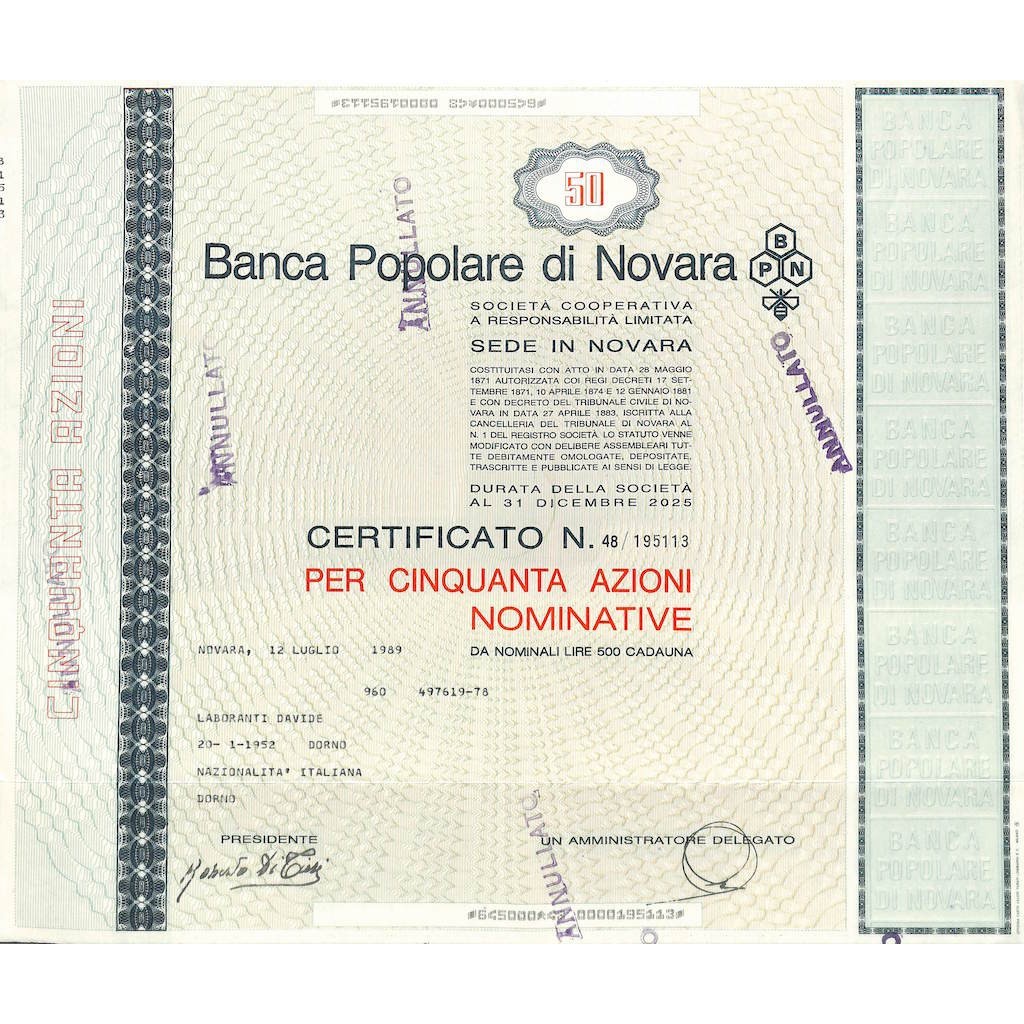 BANCA POPOLARE DI NOVARA - 50 AZIONI NOVARA 1989
