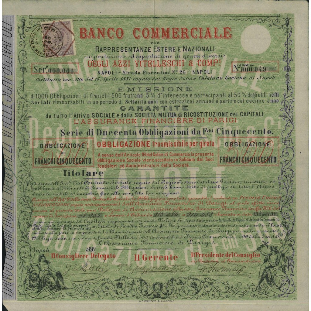 UNA OBBLIGAZIONE DI 500 FRANCHI