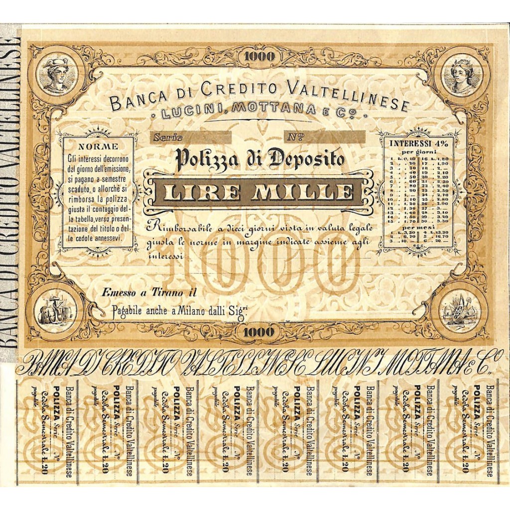 POLIZZA DI DEPOSITO DA LIRE 1000