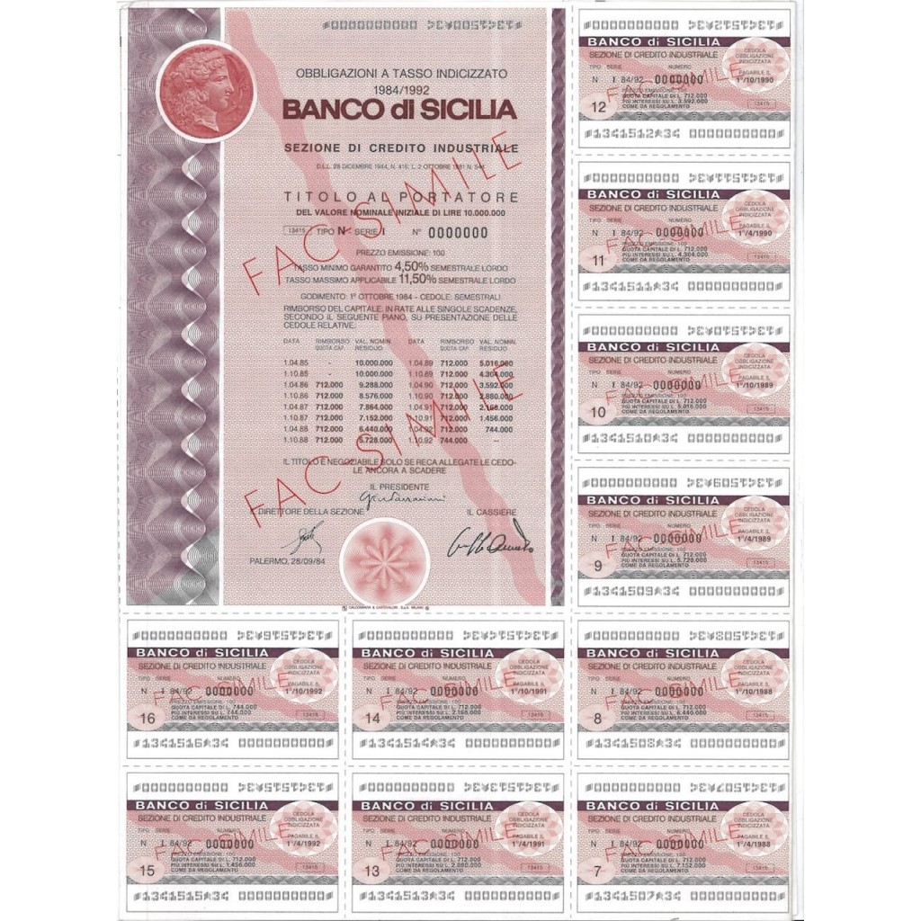 TITOLO AL PORTATORE PER OBBLIGAZIONE TASSO INDICIZZATO 1984/1992