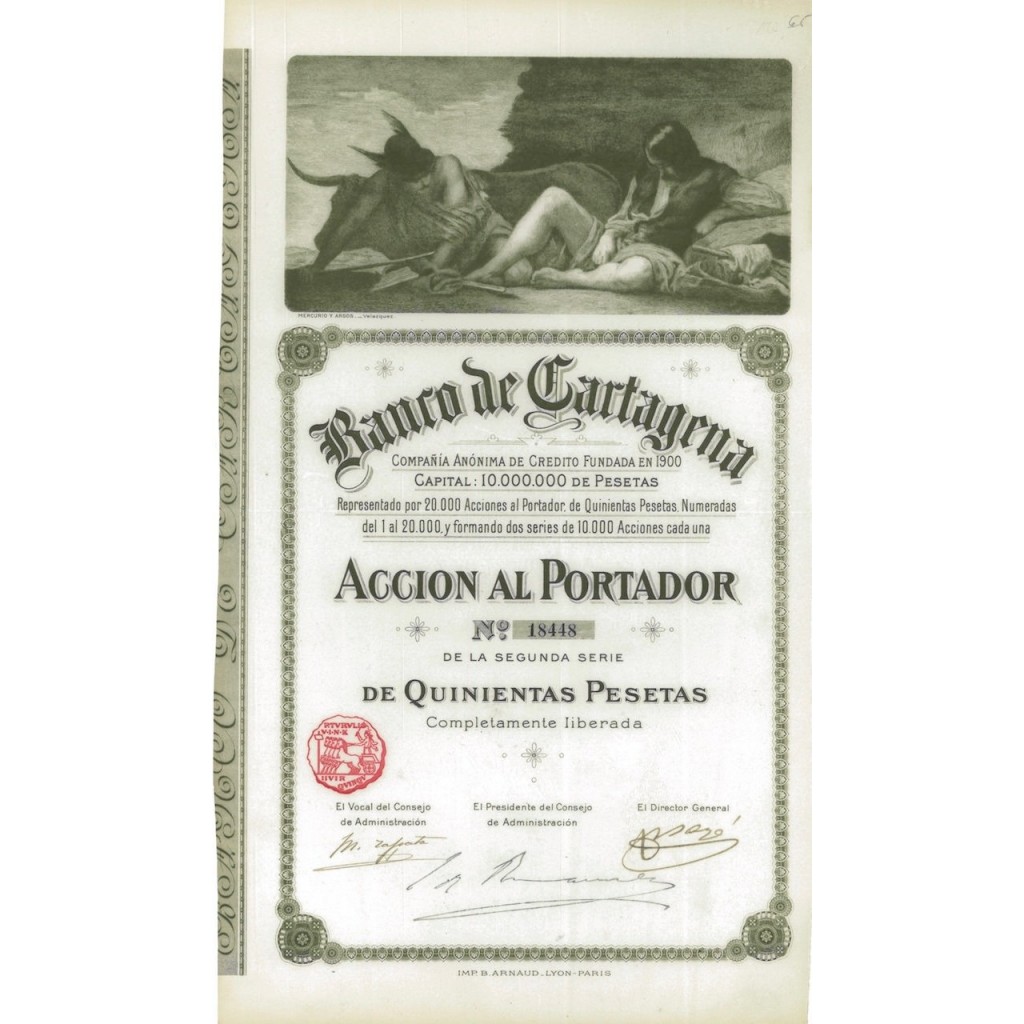 En Cartagena se creó un banco, que difundió en el pasado siglo el nombre de esta ciudad por la geografía española y en el extranjero. Se funda el 29 de marzo de 1900 como sociedad anónima, con diez millones de pesetas como capital inicial, representadas en 20.000 acciones de 500 ptas. cada una.