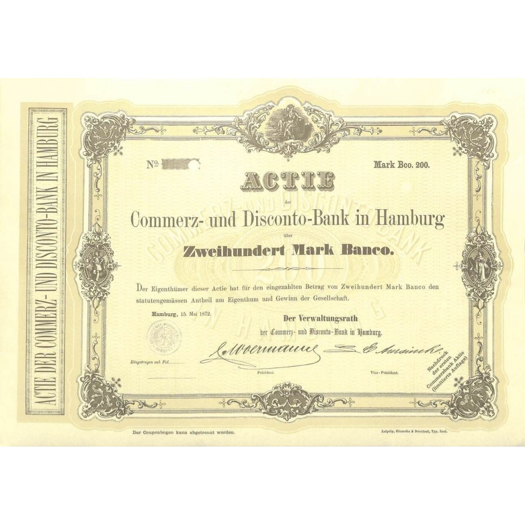 La Commerzbank è stata fondata nel 1870 da banchieri privati di Amburgo con il nome di Commerz- und Disconto-Bank ("Banca commerciale e di sconto").