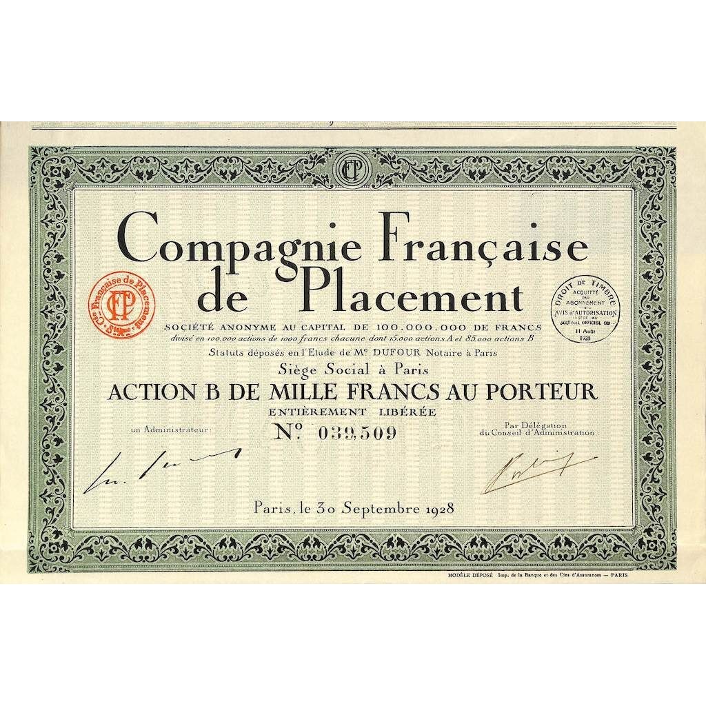 1928 - COMPAGNIE FRANCAISE DE PLACEMENT
