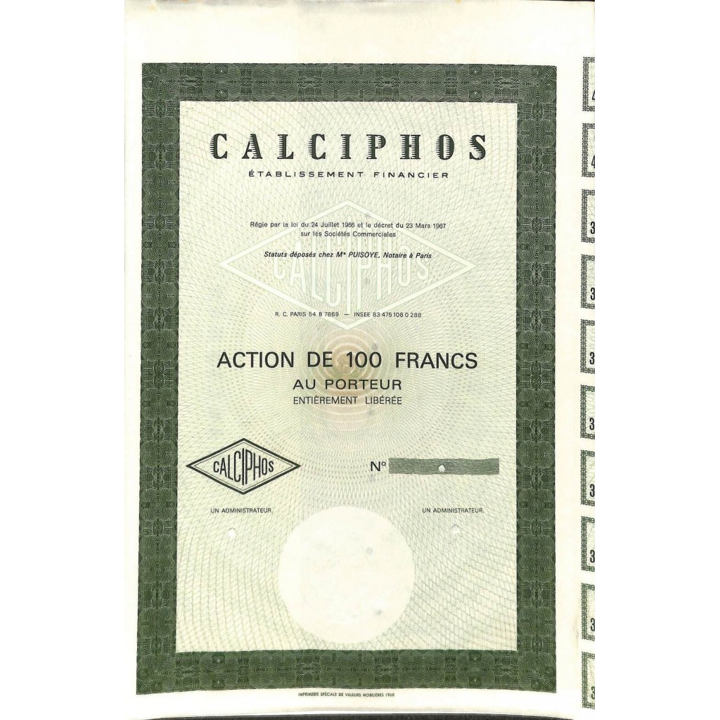 Una azione al portatore del valore di 100 Franchi.