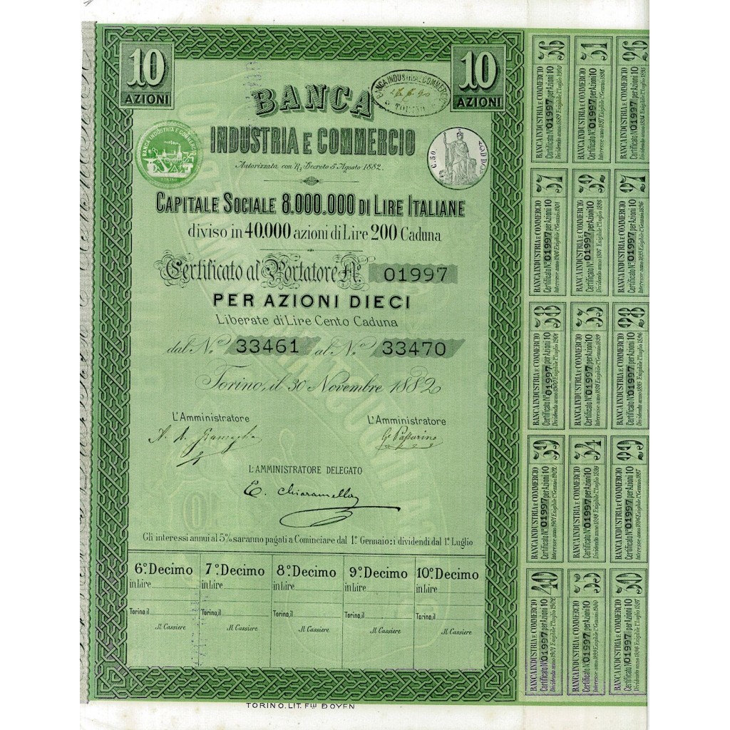 1882 - BANCA INDUSTRIA E COMMERCIO (10 AZIONI)