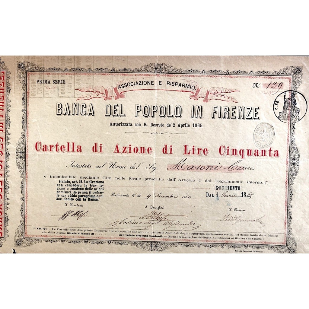 1864 - BANCA DEL POPOLO IN FIRENZE 1° SERIE