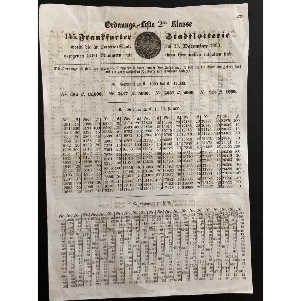 LOTTERIE SIEGEL DER FREIEN STADT FRANKFURT - ESTRATTO 1863