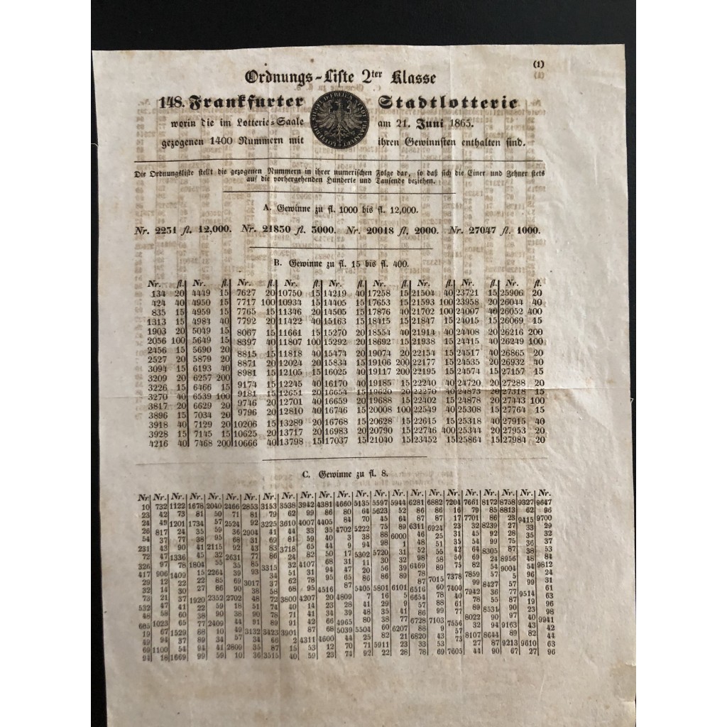 LOTTERIE SIEGEL DER FREIEN STADT FRANKFURT - ESTRATTO 1865