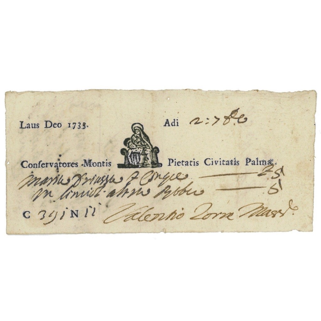 All'inizio del XVIII secolo, l'Italia era un mosaico di stati indipendenti, ognuno con le proprie leggi e istituzioni. In questo contesto, i Monti di Pietà giocavano un ruolo cruciale, offrendo un'alternativa sicura all'usura dilagante. Palmanova, una città fortezza costruita per scopi difensivi, vide la nascita del suo Monte di Pietà come risposta alle crescenti necessità sociali della sua popolazione. Il documento del 1733 attesta l’emissione di un prestito su pegno, che consentiva ai cittadini di ottenere credito in cambio di beni personali, con la garanzia che questi beni sarebbero stati restituiti una volta ripagato il prestito.