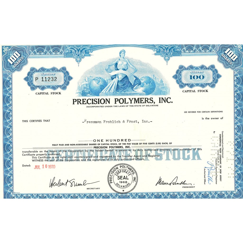 1970 - PRECISION POLYMERS, INC. - 100 AZIONI