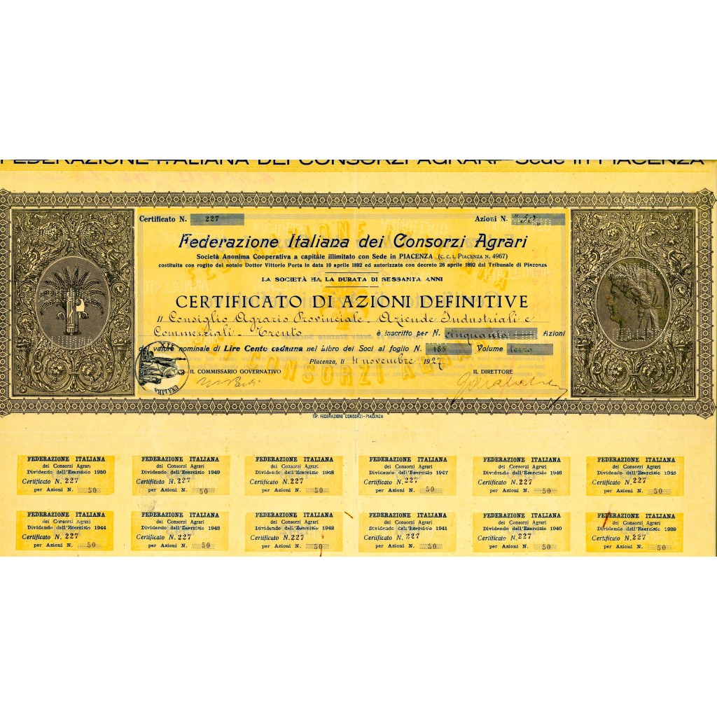 1927 - FEDERAZIONE ITALIANA DEI CONSORZI AGRARI - PIACENZA