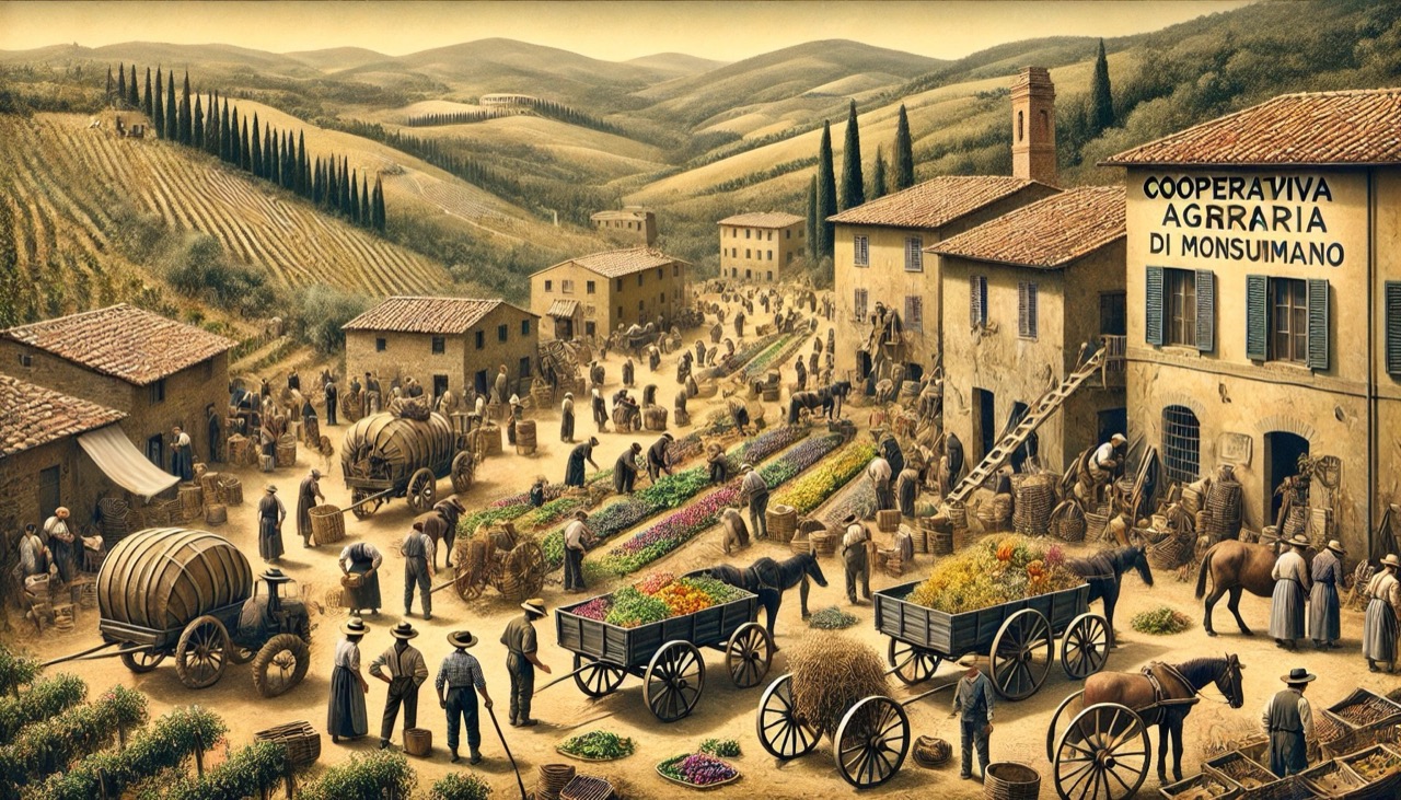La Cooperativa Agraria del Mandamento di Monsummano, costituita nel 1912, è un esempio significativo delle cooperative agricole italiane del primo Novecento, nate per sostenere l'agricoltura locale e migliorare le condizioni economiche dei soci. Questo certificato rappresenta un'azione della società cooperativa, con un valore nominale di 50 lire, ed è un documento prezioso per i collezionisti di scripofilia e gli appassionati di storia economica italiana.