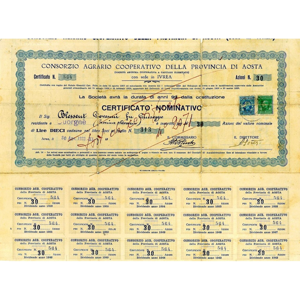 1933 - CONSORZIO AGRARIO COOPERATIVO DELLA PROVINCIA DI AOSTA