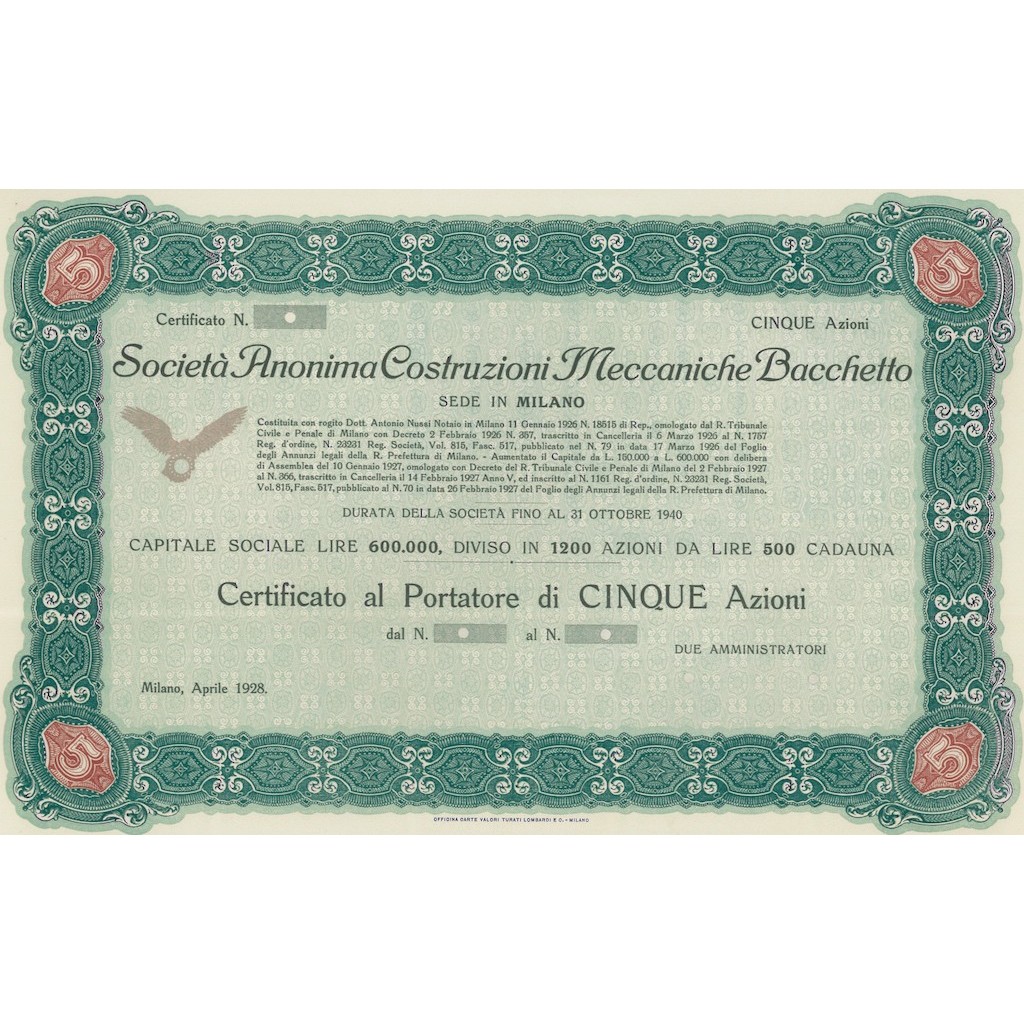 CERTIFICATO AL PORTATORE PERR 5 AZIONI