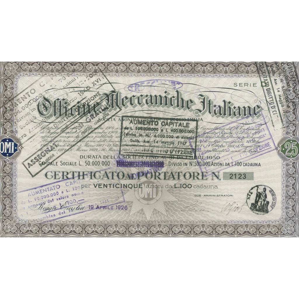 REGGIANE OFF. MECC.ITALIANE - 25 AZIONI REGGIO EMILIA 1926