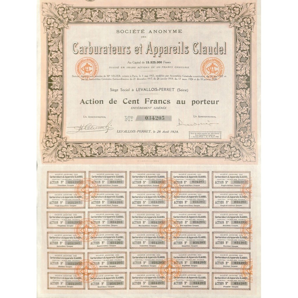 1928 - CARBURATEURS ET APPAREILS CLAUDEL