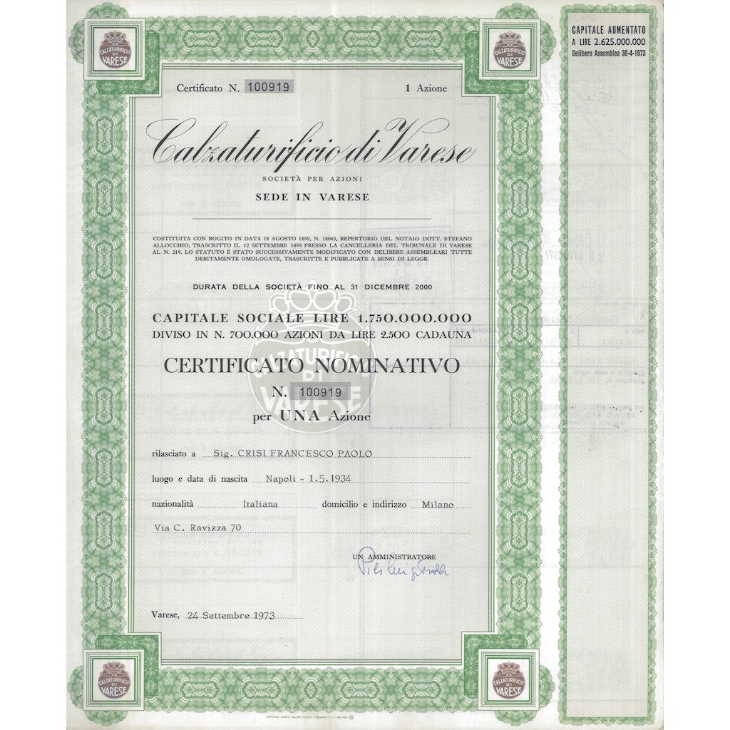 CERTIFICATO NOMINATIVO PER UNA AZIONE