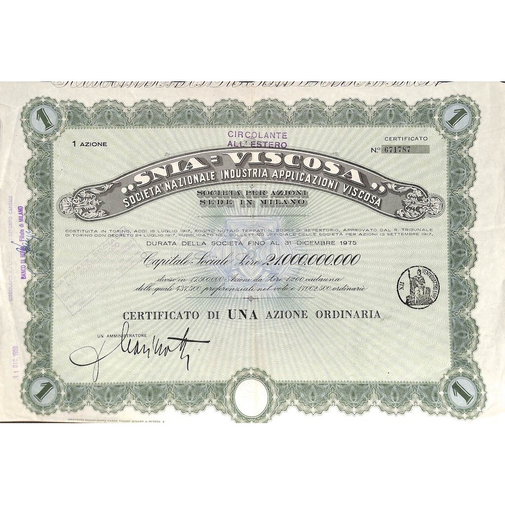 CERTIFICATO PER UNA AZIONE