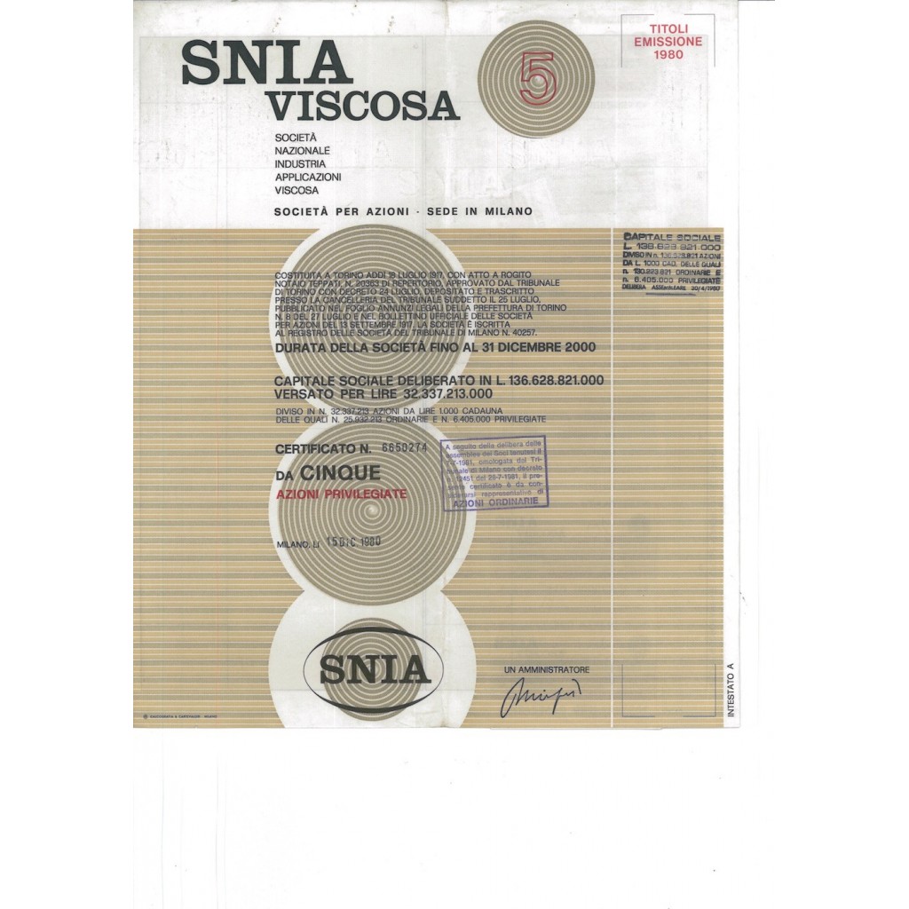 TITOLO DI 5 AZIONI AL PORTATORE