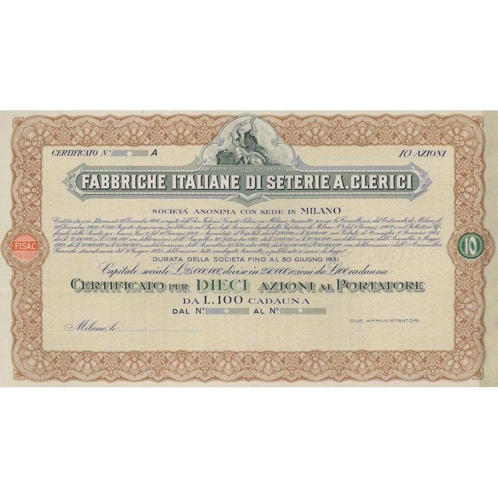 CERTIFICATO PER 10 AZIONI AL PORTATORE