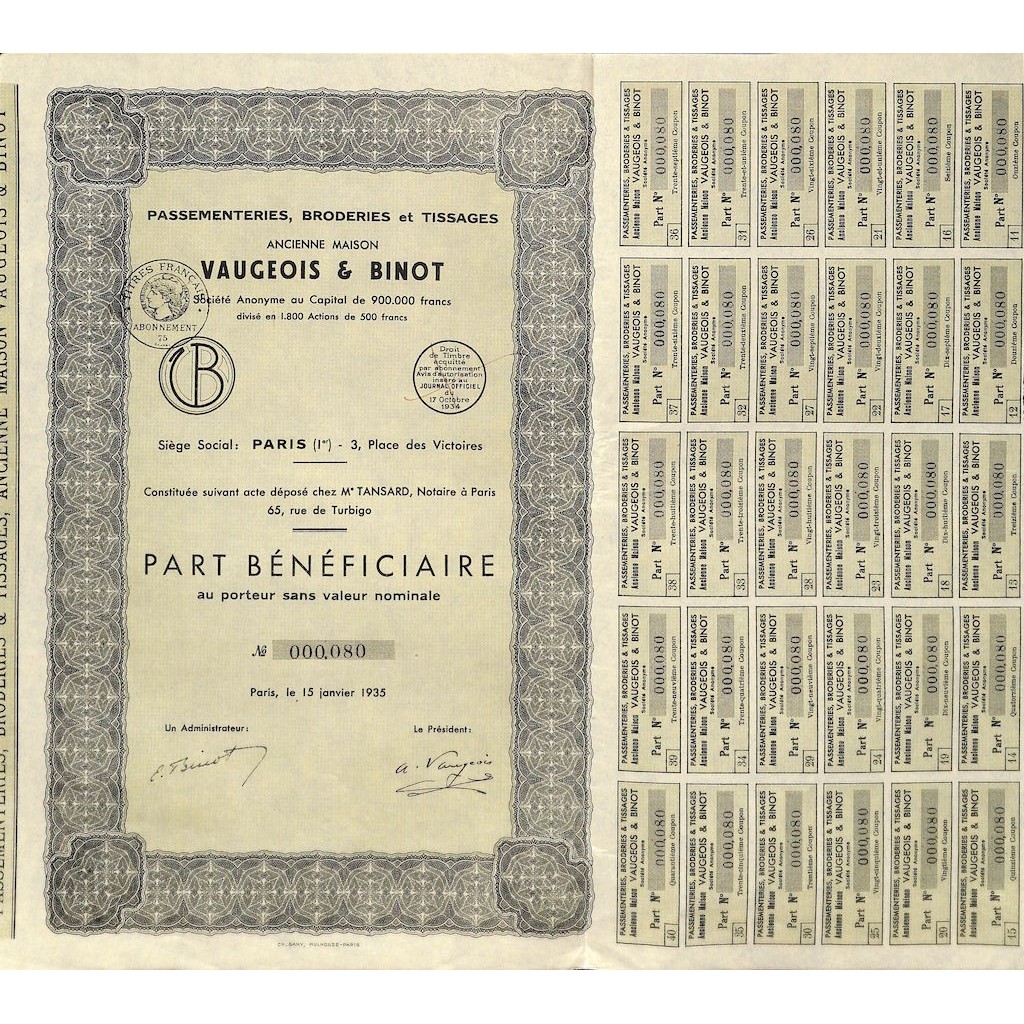 Parte beneficiaria al portatore senza valore nominale.