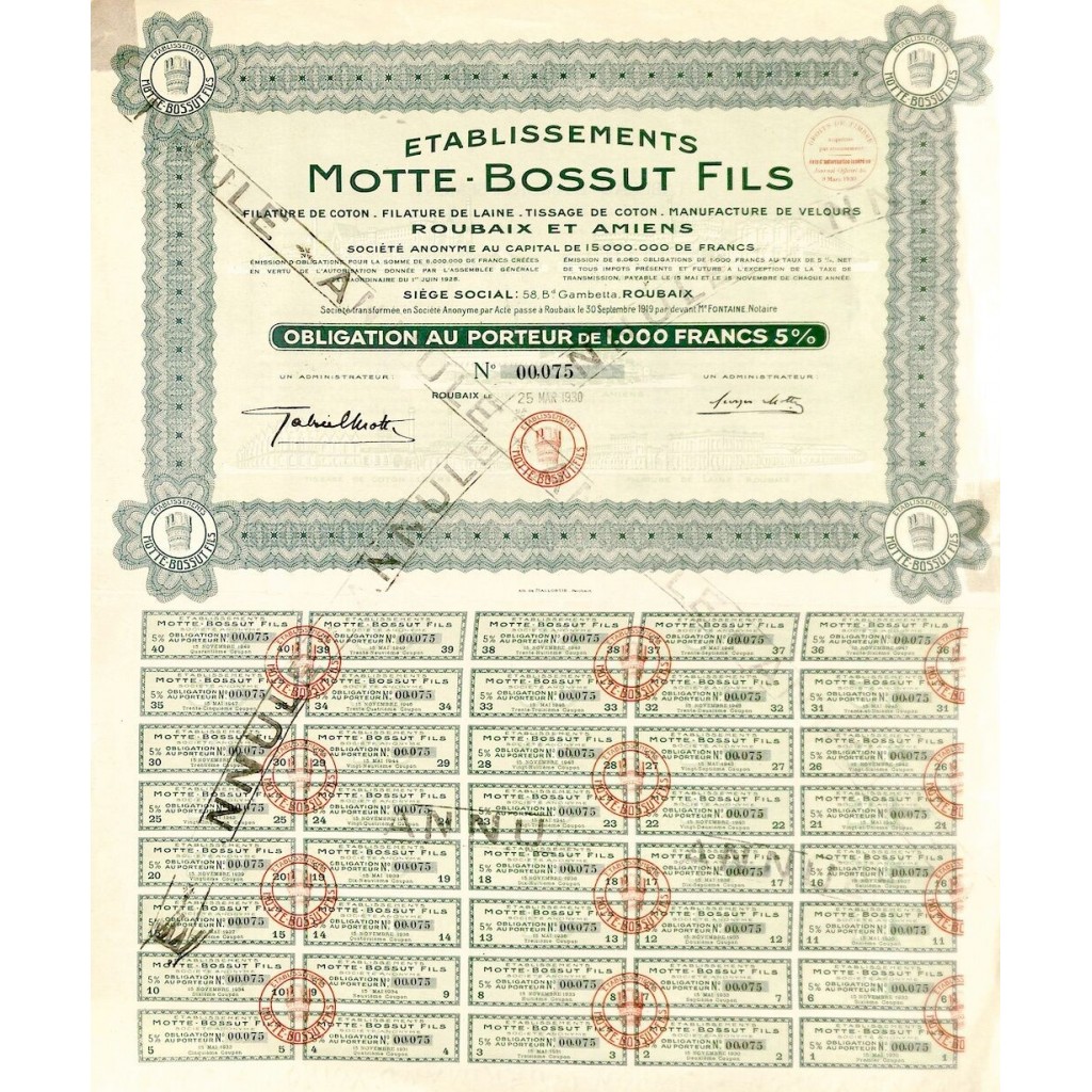 Poco dopo, per i suoi figli, Louis Motte-Bossut sviluppò un'importante tessitura di cotone a Leers, poi una filatura di lana a Roubaix. L'importanza del suo ruolo di industriale gli era valsa, nel 1863, la Legion d'onore.