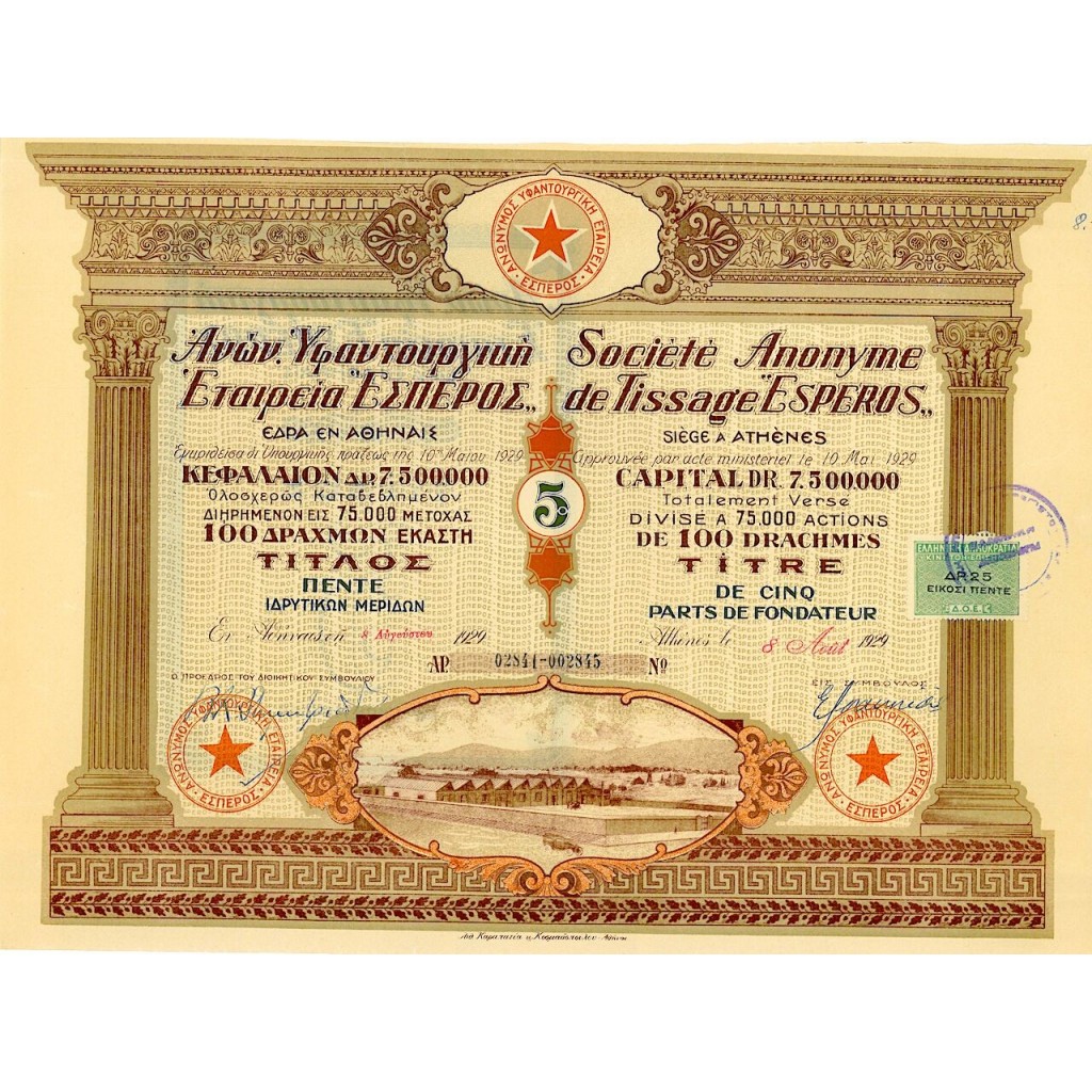 1929 - TISSAGE ESPEROS SOC. ANON. DE