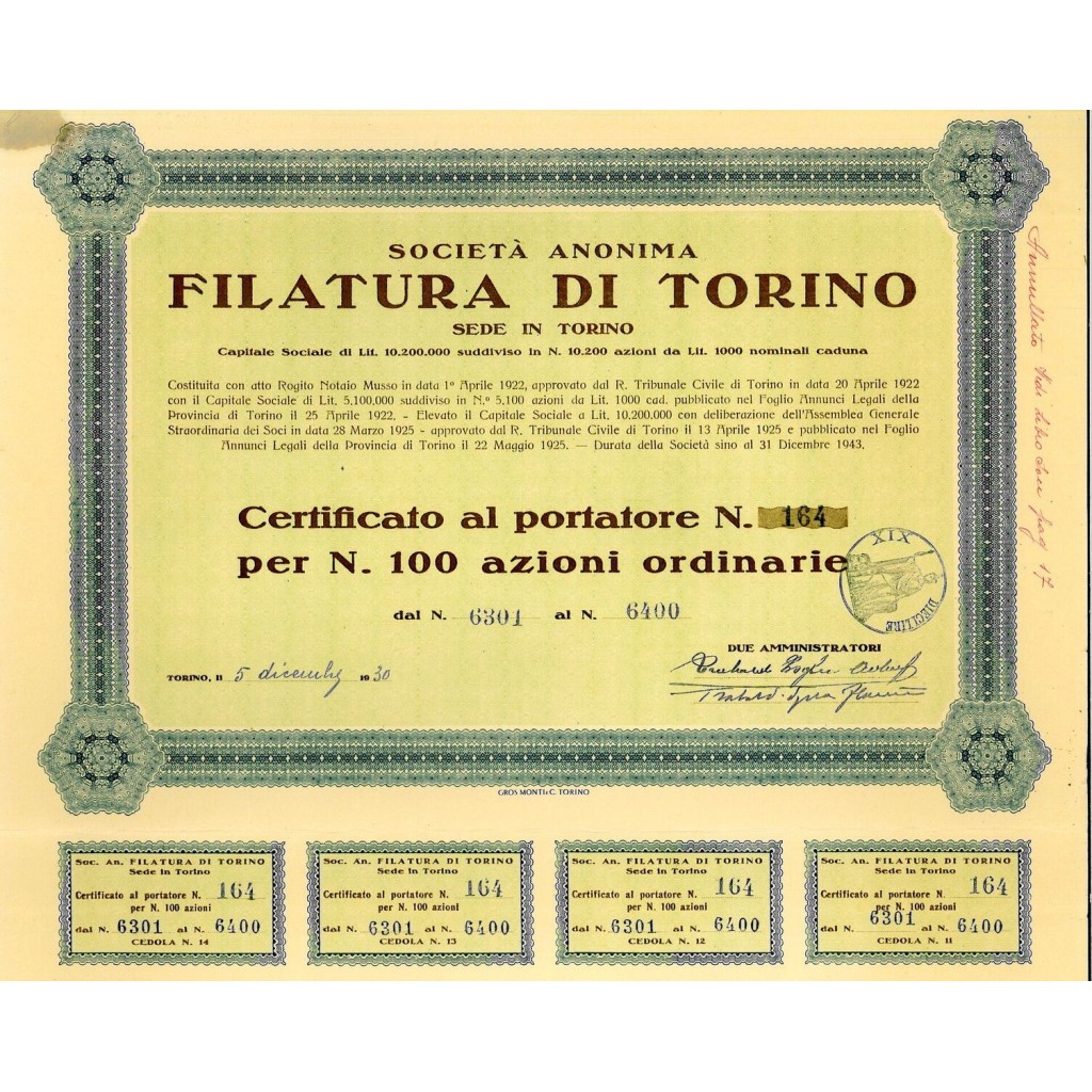 1930 - FILATURA DI TORINO SOC. ANON.