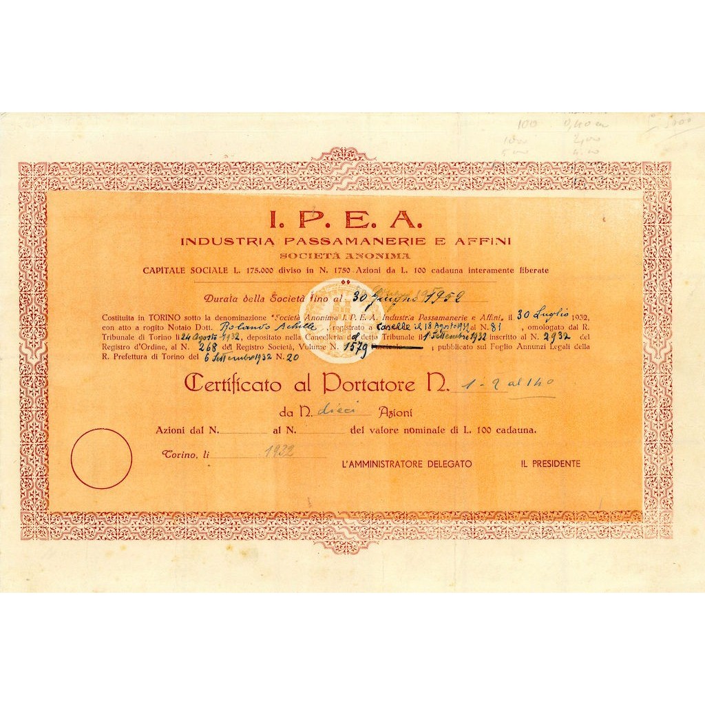 Certificato azionario al portatore.