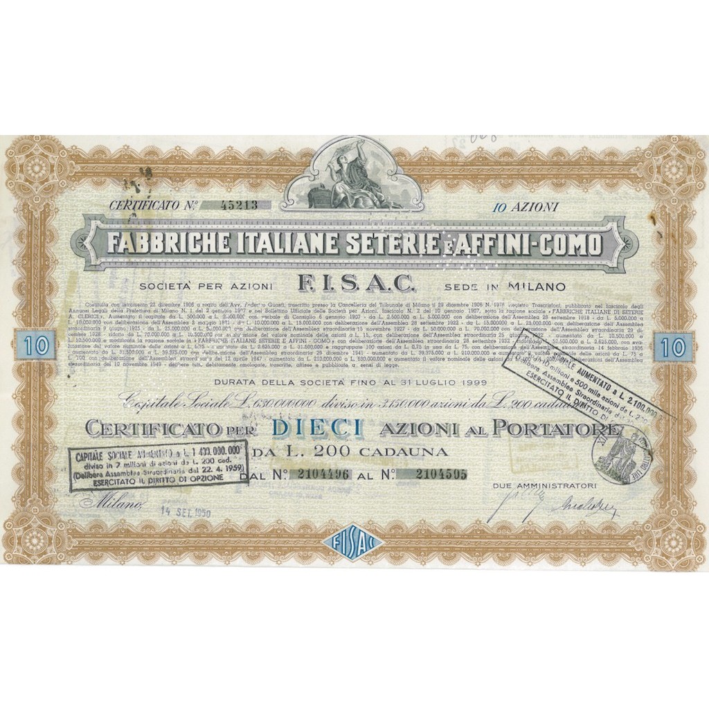 CERTIFICATO DA 10 AZIONI